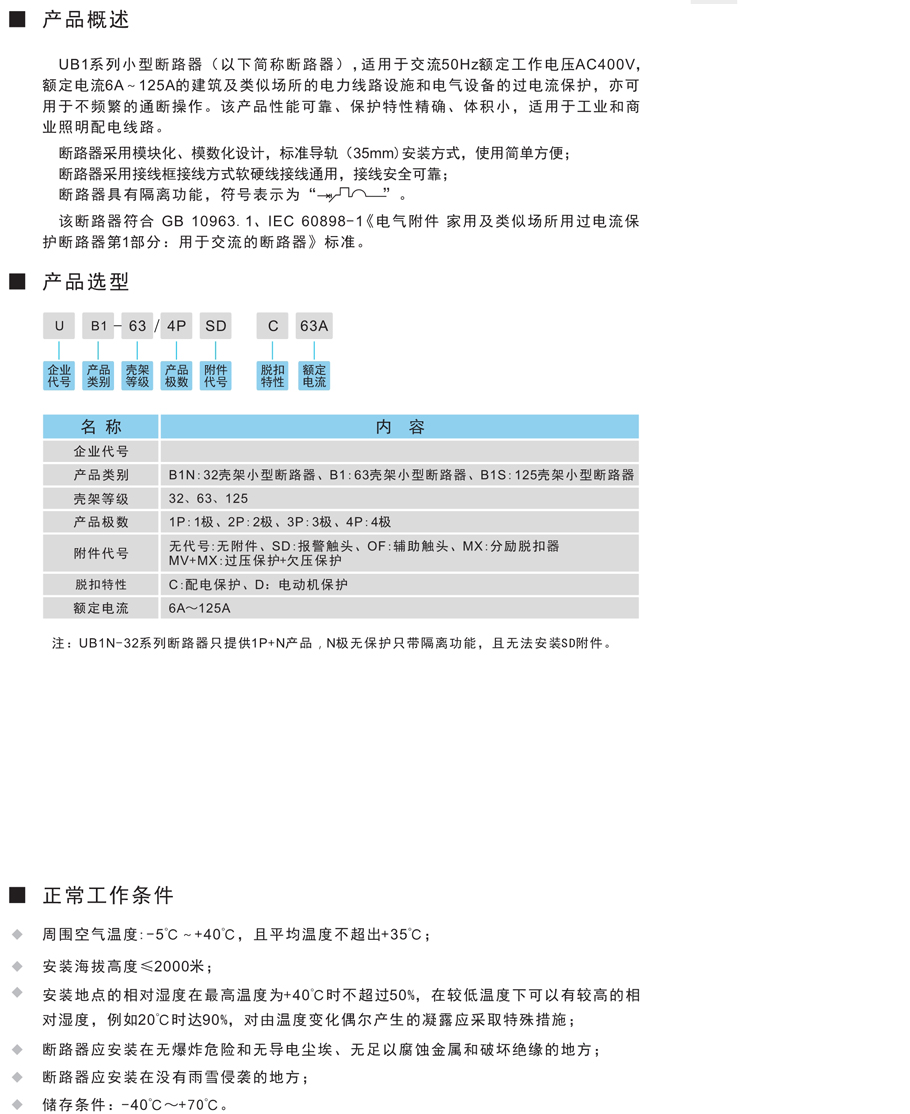 UB1系列小型斷路器